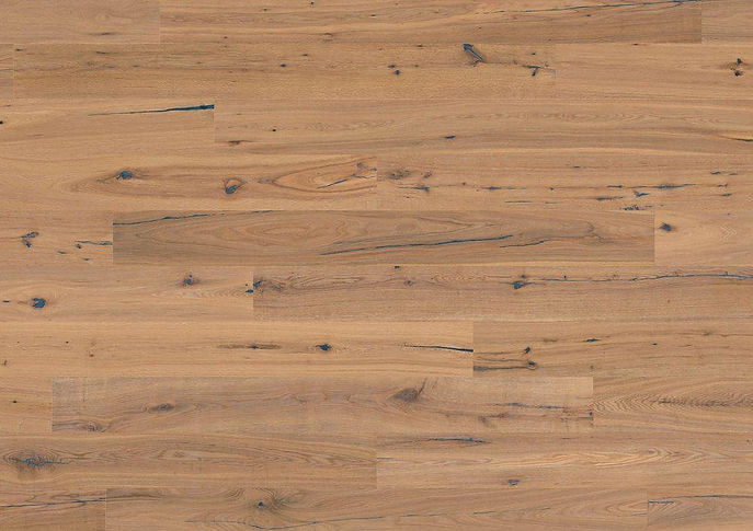 das verleiht der gesamten Bodenfläche ein ganz besonderes Erscheinungsbild. Es stehen im Angebot insgesamt fünf zeitgemäße Eichefarben. Die Oberflächen sind allesamt gebürstet und betonen so den lebhaften Charakter des Fußbodens. Für ein angenehmes Barfußgefühl sind